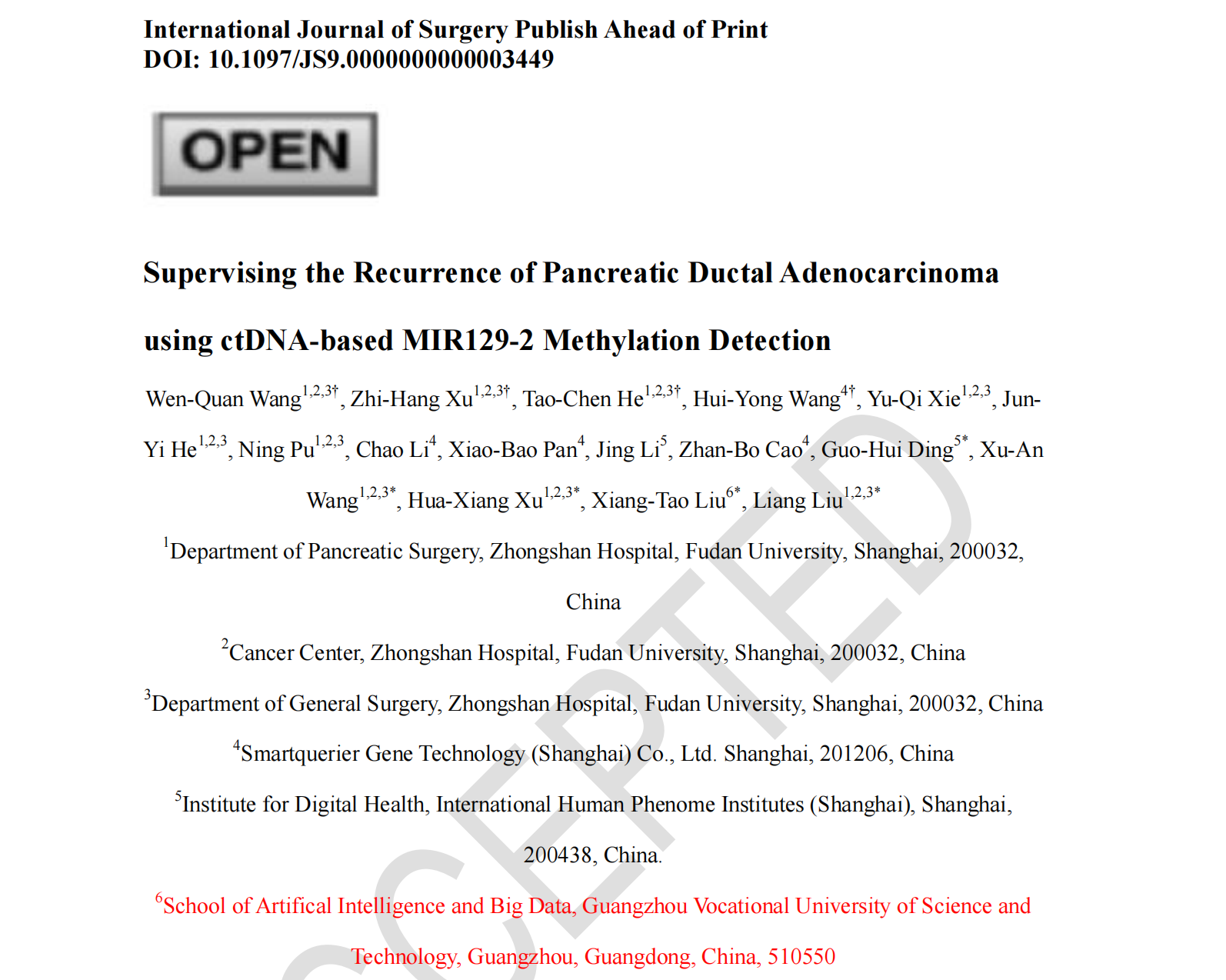 突破“癌王”监测难关:慧算基因联合中山医院发表胰腺导管腺癌复发预测新方法